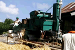 ■拖拉機(jī)自走式帶輔助喂料的免剝皮玉米脫粒機(jī)